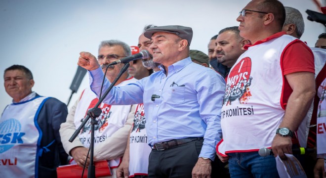 Alanda konuşan Başkan Tunç Soyer, “On yıllardır emeğin hakkının gasp edildiği, alın terinin yok sayıldığı, haklarımızın elinden alındığı bir düzen içinde yaşadık. İlk defa bu düzeni değiştirmeye çok yakınız. Çok yakında hakkımızı gasp eden o çeteler, o zümreler var ya, onların elinden hepsini geri alacağız, halkımıza geri vereceğiz. Çok az kaldı. Bugüne kadar birçoğumuzu gömmeye çalıştılar; Deniz’ler, Ali İsmail’ler, Uğur Mumcu’lar… Ama biz tohumuz, gömüldükçe daha çok geliriz. Çoğalarak geliriz. Bundan sonra da çoğalmaya devam edeceğiz. Halktan, emekten yana iktidarı hep beraber kuracağız. Gün gelir zorbalar kalmaz gider. O güne çok az kaldı. O zorbalar tıpış tıpış gidecekler. Hakkımızı söke söke alacağız, hem de demokrasiyle oyumuzla. Bir şey değişecek her şey değişecek” dedi.