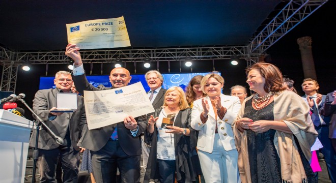 Avrupa Konseyi Parlamenterler Meclisi (AKPM) tarafından Avrupa değerlerini en iyi temsil eden kent seçilerek 2022 Avrupa Ödülü'nü almaya hak kazanan İzmir, ödülü simgeleyen heykelciğine kavuştu. İzmir Büyükşehir Belediyesi’nin kent adına başvuruda bulunduğu programında İzmir’e layık görülen ödül İzmir Büyükşehir Belediye Başkanı Tunç Soyer’e verildi.