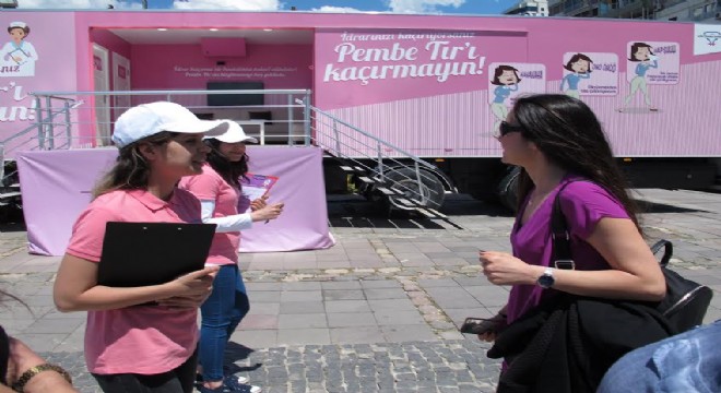 Nobel İlaç’ın desteğiyle yürütülen projede İstanbul’dan yola çıkan Pembe Tır İzmir’de Alsancak Vapur İskelesi önünde kadınları bilinçlendirecek. Proje kapsamında kadınlara, hastalığın belirtileri, tedavisi ve erken tanının önemi konusunda uzmanlar tarafından bilgiler verilecek. İzmir’de Alsancak Vapur İskelesi önünde bulanan Pembe tırın içinde kadınlar bilgilendirilerek, hemşireler tarafından da kontrol edilecek.