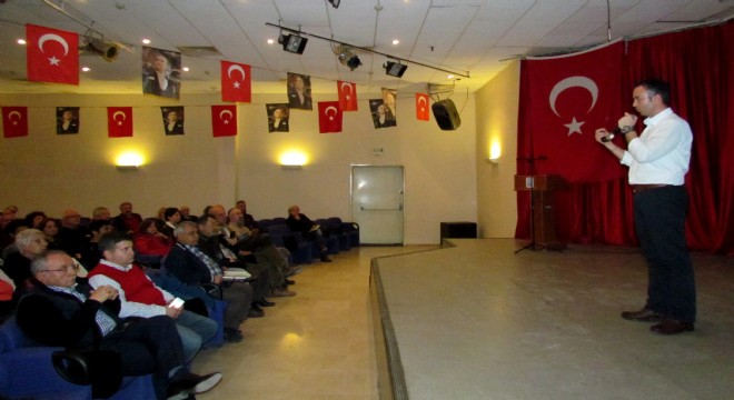 Çakabey Kültür Merkezi'nde gerçekleştirilen toplantıda, iletişim uzmanı Görkem Başaran insanlarla doğru iletişim ve propaganda yöntemleri konusunda uzun bir açıklama yaptı.