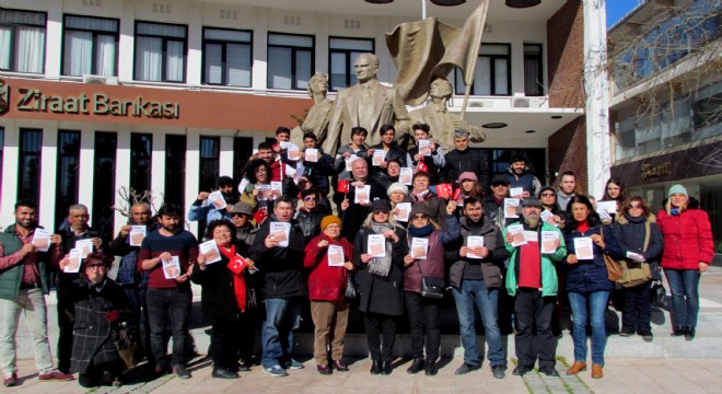 Çeşme pazarının ardından Uzun Sokak ve İnkılap Caddesi'nde de İzmir Marşı'nı söyleyerek yürüyen gönüllüler, çarşı esnafına ve vatandaşlara bayrak ve "Neden Hayır" başlıklı bildiriyi dağıttılar.