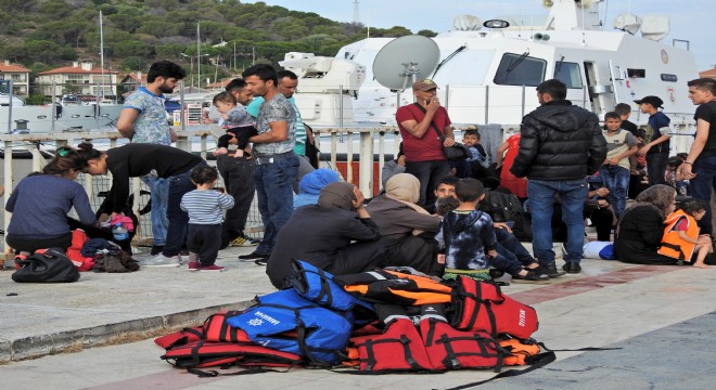 Aralarında çok sayıda çocuk ve kadının da bulunduğu Suriye uyruklu kaçak göçmenler, Çeşme iskelesine getirildiler. Sahil Güvenlik ekipleri göçmenlere bisküvi ve meyve suyu dağıtarak ihtiyaçlarını gidermeye çalıştılar. Göçmenlerin can yeleklerine de imha edilmek üzere el konuldu.?