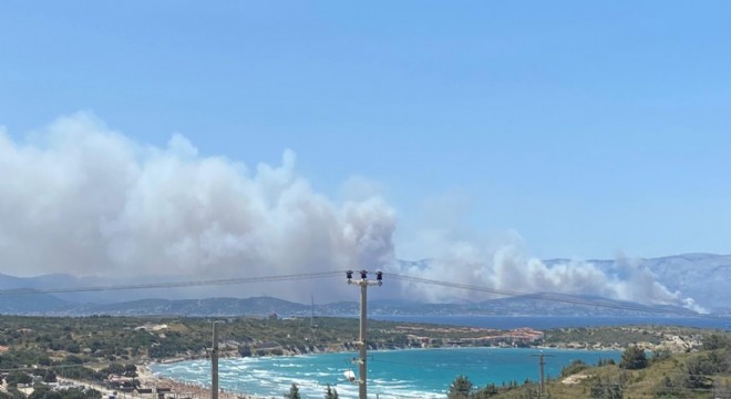 Çeşme'nin komşusu Yunanistan'ın Sakız (Chisos) Adası'nda bugün öğle saatlerinde başlayan yangına müdahale sürüyor.