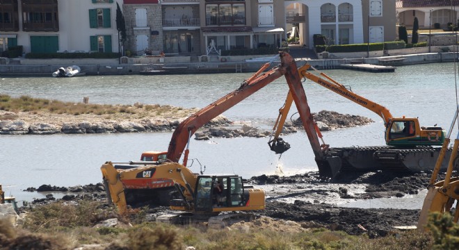Kontları satın alan kişilerin teknelerini evlerinin önüne bağlamak için kepçelerle kanal açılan Alaçatı Port 3. Etap projesi…