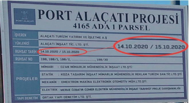 Ancak inşaat alanında bulunan panoda ruhsatların 14-15 Ekim 2020 tarihinde alındığı, yani M. Ekrem Oran’ın görev sürecinde verildiği görülüyor.