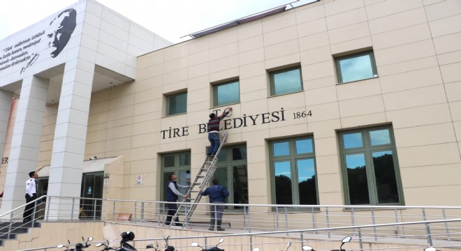 Tire Belediye Başkanı Salih Atakan Duran'ın talimatıyla Tire Belediyesi Hizmet Binası'na Türkiye Cumhuriyeti'nin kısaltması olan 'T.C.' ibaresi eklendi.