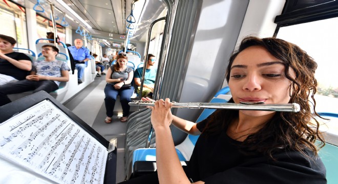 İzmir Büyükşehir Belediyesi, kent merkezinde işletmeye başladığı yeni tramvay hatlarında İzmirlilere konforun yanı sıra "içinde notaların uçuştuğu" yolculuk keyfi sunuyor.