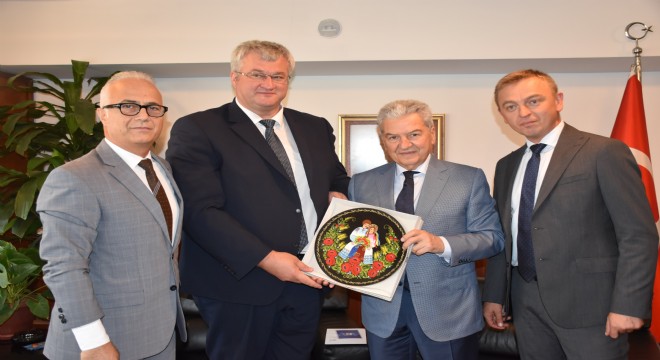 Ukrayna Ankara Büyükelçisi Andrii Sybiha, Ukrayna İstanbul Başkonsolosu Oleksandr Gaman ve Ukrayna İzmir Fahri Konsolosu Çetin Güvercin İzmir Ticaret Odası Başkan’ı Ekrem Demirtaş’ı makamında ziyaret ederek iki ülke arsındaki ticari işbirliğini artması için fırsatları ele aldı. 86’ıncı İzmir Enternasyonel Fuarı’na katılmadıkları için yatırım fırsatlarını değerlendirmek adına İTO ziyaretinin büyük önem taşıdığını ifade eden Ukrayna Ankara Büyükelçisi Andrii Sybiha, İzmir’e özel yatırım projelerini içeren dosyayı İTO Başkanı Ekrem Demirtaş’a sundu . 86’ıncı İzmir Enternasyonel Fuarı’na katılmadıkları için yatırım fırsatlarını değerlendirmek adına İTO ziyaretinin büyük önem taşıdığını ifade eden Ukrayna Ankara Büyükelçisi Andrii Sybiha, İzmir’e özel yatırım projelerini içeren dosyayı İTO Başkanı Ekrem Demirtaş’a sundu.