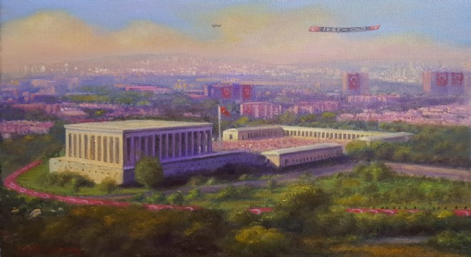 Büyük Önder Mustafa Kemâl Atatürk'le, Cumhuriyet ilke ve devrimlerinin sıkı takipçisi olduğunu ifade eden Derman, son olarak Anıtkabir tablolarını yaptı.