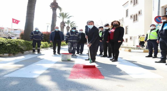 İçişleri Bakanlığı tarafından yaya önceliği konusunda farkındalık oluşturmak amacıyla başlatılan “kırmızı çizgi uygulaması” Urla’da gerçekleşti.