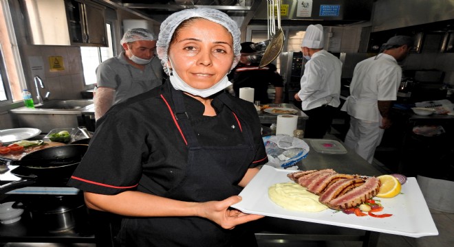 Yahya Kerim Onart Mesleki ve Teknik Anadolu Lisesi'nin mutfak atölyesinde gerçekleştirilen uygulamalı sınavı Çeşme Milli Eğitim Müdürü Şahan Çoker de izledi.
