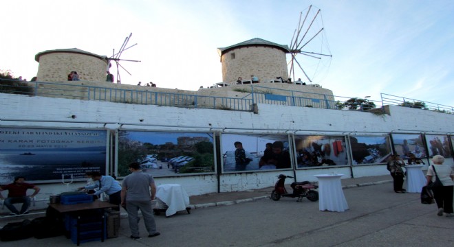 Alaçatı mahallesindeki tarihi değirmenlerin alt tarafında bulunan 21 adet Billboard'da, vatanlarındaki iç savaştan, varil bombalarından kaçarak umuda yolculuğa çıkan vatansızların dramını fotoğrafları ile yansıtan Karar, sergisi ile yaşanan drama dikkat çekmek istediğini söyledi.