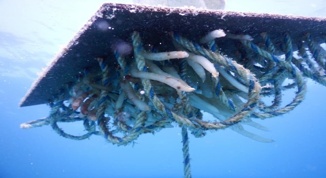 Dalış alanına bırakılan 2 yapay yuvadaki yavru kalamarlar da Derin Doğa Dalış Merkezi sahibi Erdinç Ergün ve dalgıçlar tarafından geçtiğimiz gün görüntülendi.