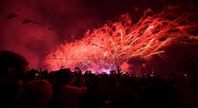 Cumhuriyet'in kenti İzmir'de, Büyükşehir Belediyesi tarafından Cumhuriyet’in 95. kuruluş yıldönümü etkinlikleri büyüleyici finalle son buldu. Gece geç saatlere kadar süren ve sokaklara taşan Cumhuriyet kutlamaları, fener alayı yürüyüşü ile başladı. İzmir Büyükşehir Belediye Başkanı Aziz Kocaoğlu, eşi Dr. Türkegül Kocaoğlu, belediye başkanları, sivil toplum örgütü temsilcileri ve toplumun her kesiminden binlerce İzmirli, kol kola girerek marşlar eşliğinde Cumhuriyet Meydanı'ndan Gündoğdu Meydanı'na kadar yürüdü. İzmirliler, 350 metrelik Türk Bayrağını "kutsal bir emanet" gibi özenle tutarak Cumhuriyet Meydanı’ndan Gündoğdu Meydanı’na taşıdı. İzmir Büyükşehir Belediye Bandosu da çaldığı marşlarla yürüyüşe eşlik etti. Geceye görkemli havai fişek ve ışık gösterileri damga vurdu. Birin ci Kordon, Türk bayrakları ile kırmızıya boyandı. Gündoğdu Meydanı’nda İzmirliler büyük bir sürpriz ile karşılaştı. Deniz suyunu güçlü motorlarla iterek uçmayı sağlayan flyboardlar ise Gündoğdu sahilindeki ışıklı gösterileriyle nefesleri kesti.