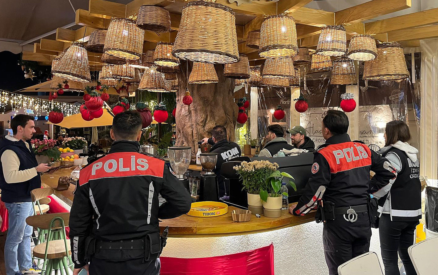 Çeşme İlçe Emniyet Müdürlüğü ve Çeşme KOM Büro Amirliği ekipleri ile birlikte; 2026 Yılbaşı etkinliklerinin huzur içerisinde gerçekleşmesi ve halk sağlığının korunması adına ilçede faliyet gösteren  eğlence mekanında yasal evraklar ve satılan alkol ürünleri yönünden denetim yapıldığını açıklayan İlçe Emniyet Müdürlüğü, vatandaşları da uyararak herhangi bir şüphe kapsamında kendilerine 112!den ulaşabileceklerini de sözlerine eklediler.