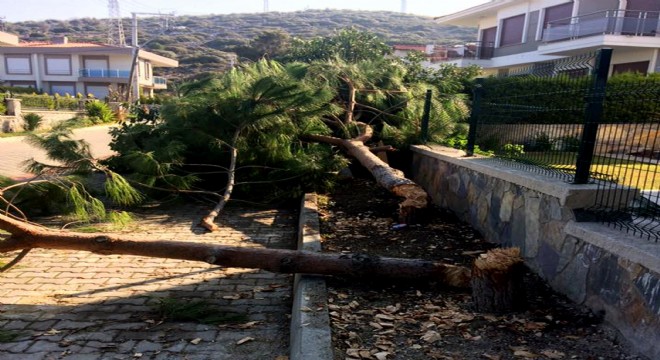 Çeşme'nin daha yeşil olması için herkes çaba gösterirken, çam ağaçlarının kesildiğini gören vatandaşlar isyan etti.