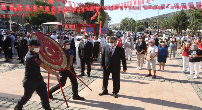 Çelenk sunma ile başlayan törene Çeşme Kaymakamı ve Çeşme Belediye Başkanı Ekrem Oran, Siyasi Parti Temsilcileri, Sivil Toplum Kuruluşları ve Çeşmeli vatandaşlar katıldı.