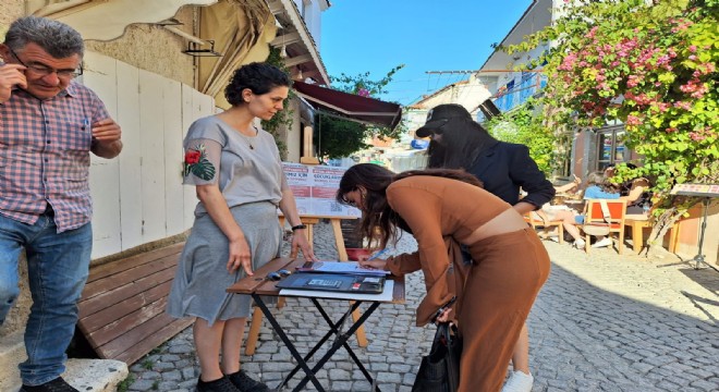 Çeşme THTM tarafından Çarşamba günü Alaçatı’da, Alaçatı Kitabevi önünde başlılan imza kampanyasına vatandaşlar yoğun ilgi gösterdi.