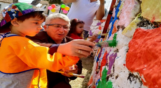 Anne, babalar, öğretmenler ve öğrenciler fırçalarını kapıp, Germian İlkokulu'nun bahçe duvarlarını rengarenk boyadılar.