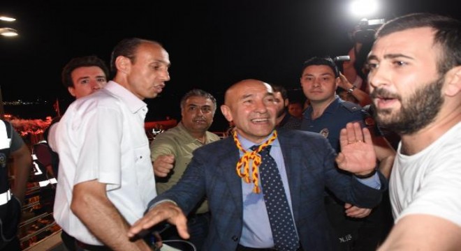 İzmir Büyükşehir Belediye Başkanı Tunç Soyer de kutlamalara katıldı. Göztepe Şehit Kerem Oğuz Erbay Köprüsü üzerine gelen Soyer, burada taraftarları selamladı. Başkan Soyer, sarı-kırmızılı taraftarlara üçlü çektirdi.
