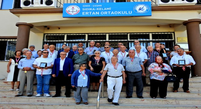 Çeşme'de 1950'li yıllarda Ertan Ortaokulu'nda okuyan eski öğrenciler ve 1951 yılından bu yana okulda görev yapıp emekliye ayrılan öğretmenler ile şu anda okumakta olan öğrenciler, Sıdıka Kelami Ertan Ortaokulu bahçesinde yapılan İlköğretim Haftası töreninde bir araya geldiler.