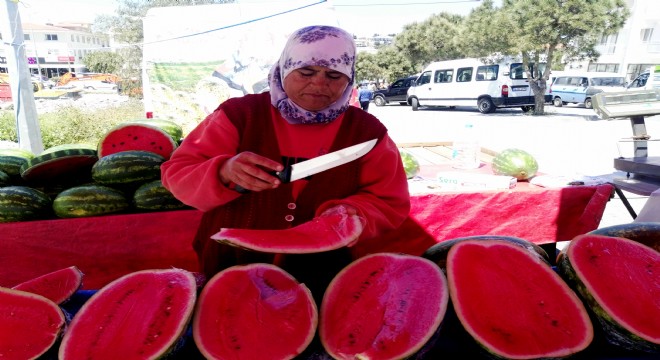 Bu yılın ilk karpuzlarını Karpuzcu Dudu, Çeşme ve Alaçatı pazarlarında satışa çıkardı.