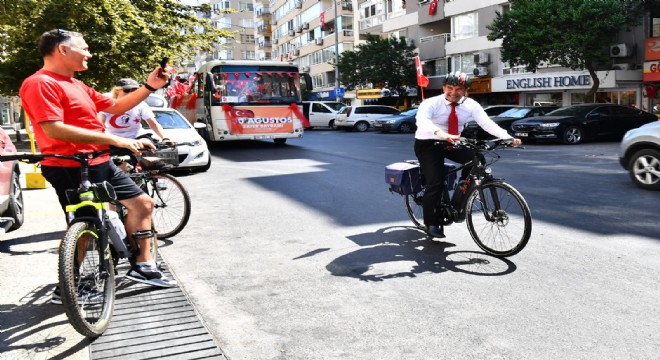 İzmir Büyükşehir Belediye Başkanı Tunç Soyer, 30 Ağustos Zafer Bayramı nedeniyle İzmirlileri bisiklete binerek selamladı. Koronavirüs önlemeleri nedeniyle Valilik tarafından alınan karar çerçevesinde Başkan Tunç Soyer, önceki bayramların aksine Büyükşehir Belediyesi bando takımının yer aldığı üstü açık otobüse binmedi. Başkan Soyer, bu kez kortejin önünde bisikletiyle ilerleyerek Karataş'tan Üçkuyular'a kadar geldi.